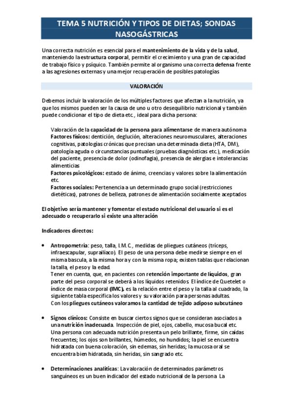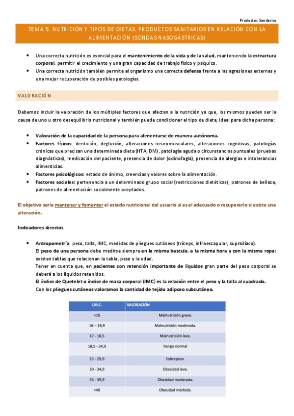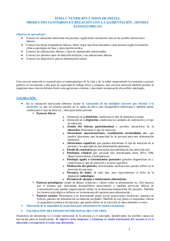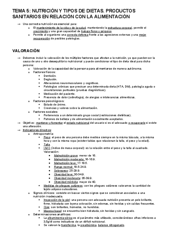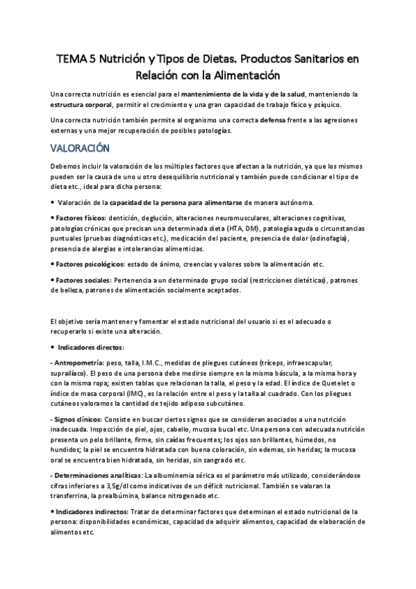 tema 5 - nutrición y tipos de dietas. productos sanitarios en relación con alimentación
