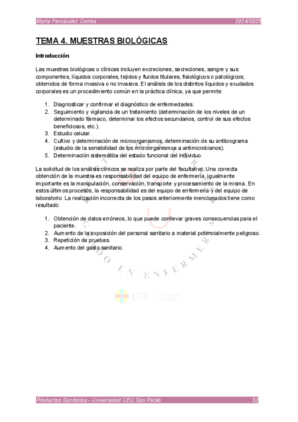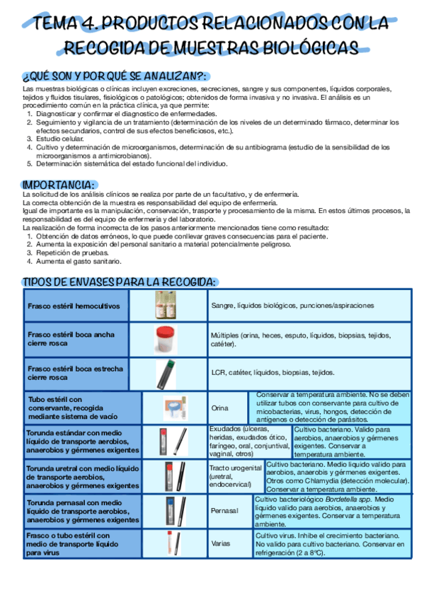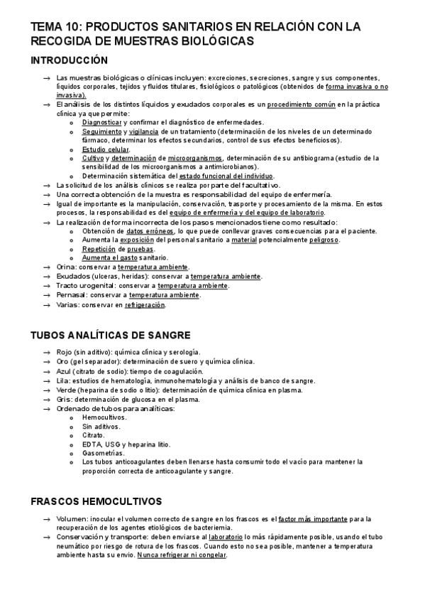 He publicado nuevos apuntes de 1º Productos Sanitarios: tema 10 - productos sanitarios en relación con recogida muestras biologicas