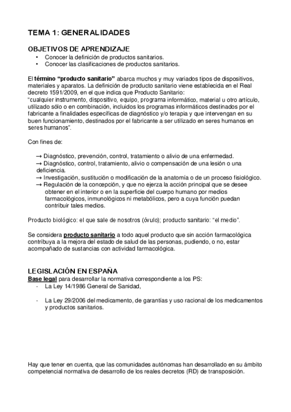 He publicado nuevos apuntes de 1º Productos Sanitarios: tema 1 - generalidades