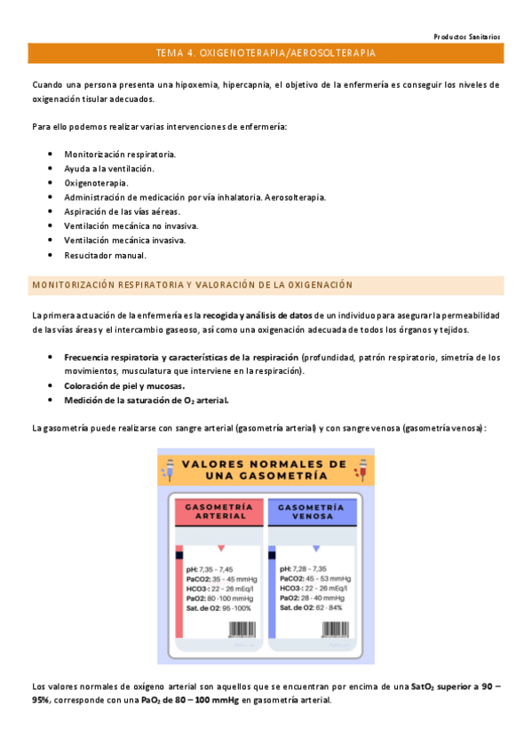 He publicado nuevos apuntes de 1º Productos Sanitarios: tema 4 - oxigenoterapia