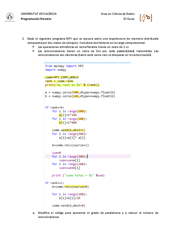 He publicado nuevos practicas de 2º Programació Paral·lela: Memoriay-codigospractica1.pdf