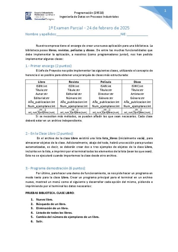 He publicado nuevos examenes de 1º Programación: Examen Práctico Programación