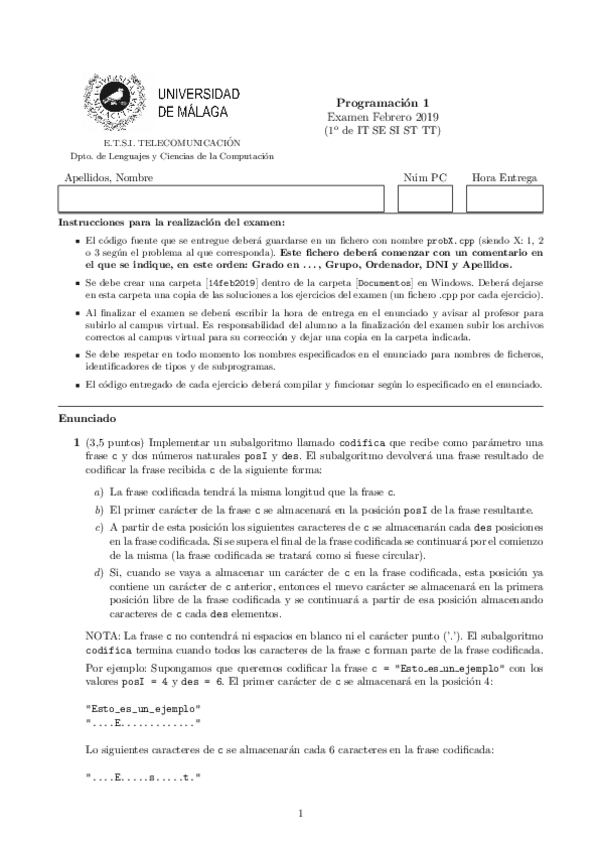 He publicado nuevos apuntes de 1º Programación 1: Exámenes 2019