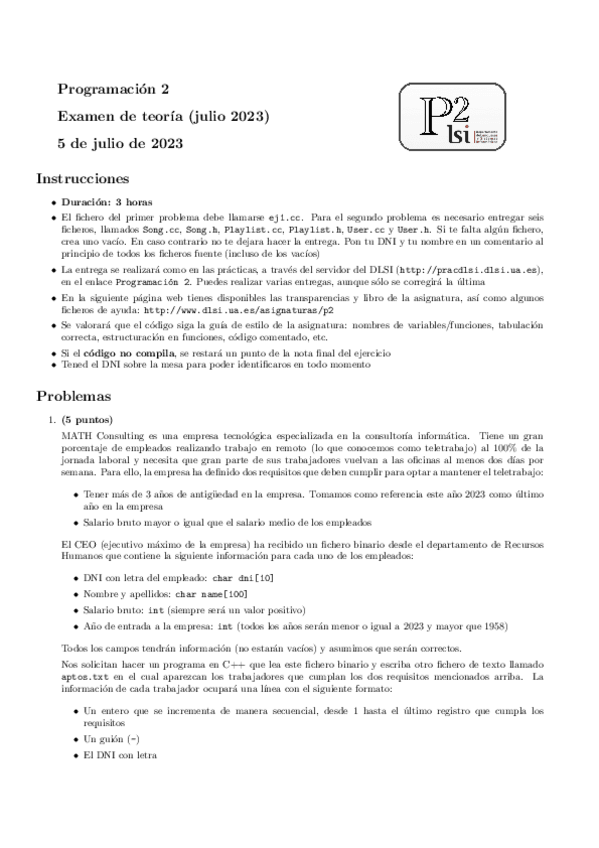 He publicado nuevos examenes de 1º Programación 2: Examen C3 2023 Resuelto Programación 2 (c++ por cuestiones)