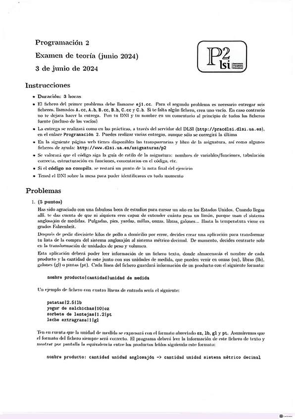 He publicado nuevos examenes de 1º Programación 2: Final-Junio-2024.pdf