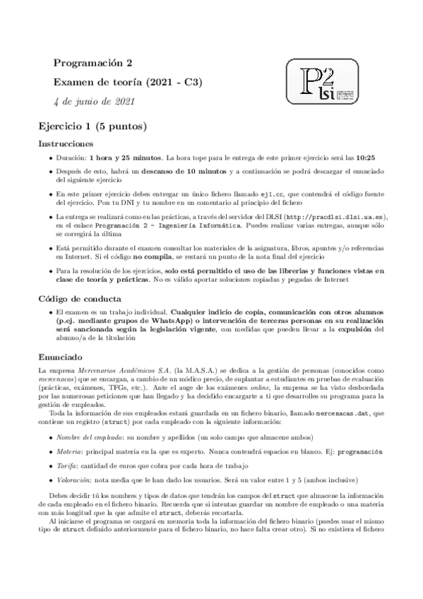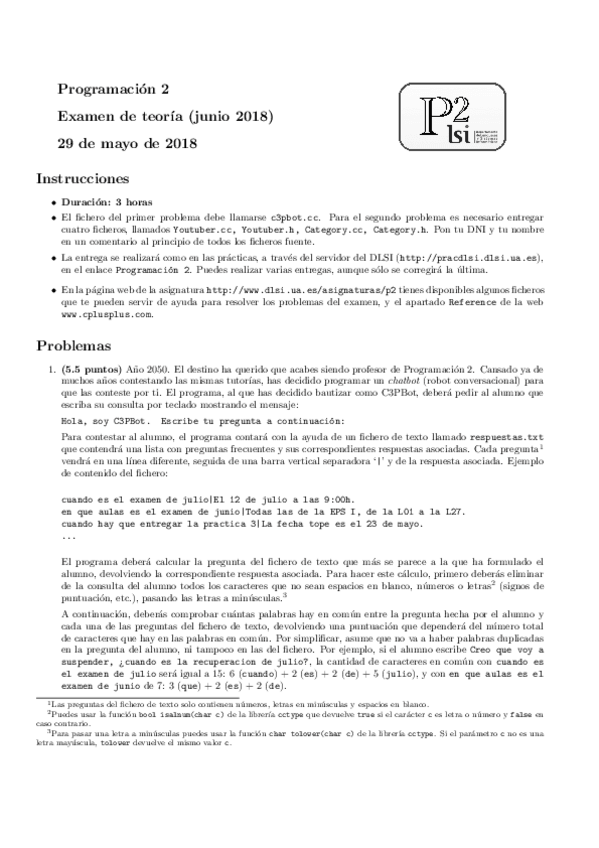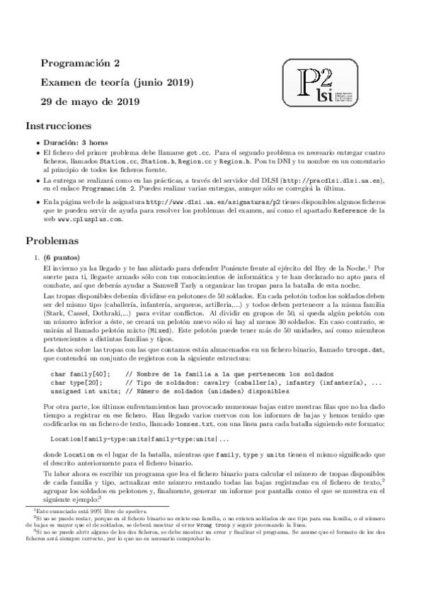 He publicado nuevos examenes de 1º Programación 2: Examen C3 2019 Resuelto Programación 2 (c++ por cuestiones)