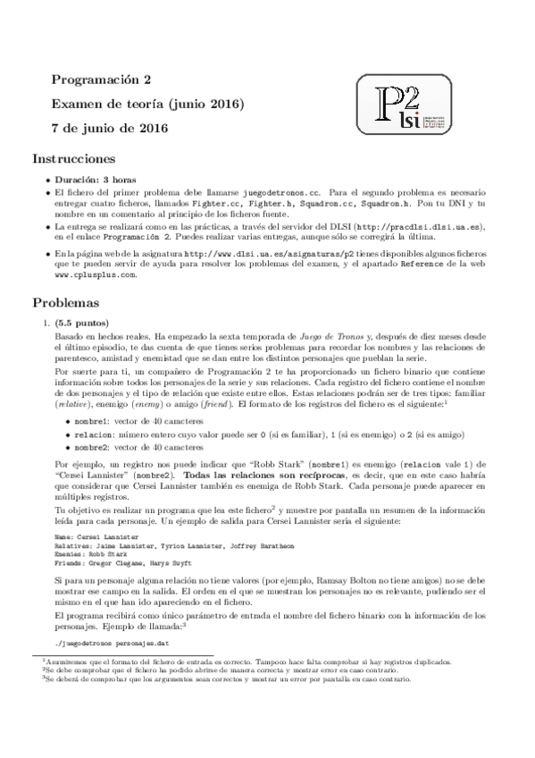 He publicado nuevos examenes de 1º Programación 2: SOLUCIÓN JUNIO 2016