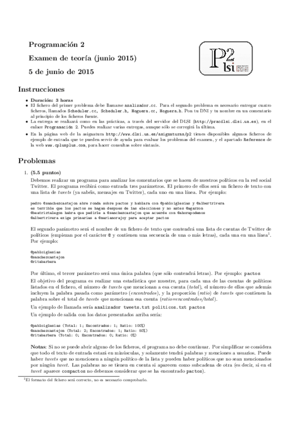 He publicado nuevos examenes de 1º Programación 2: SOLUCIÓN JUNIO 2015