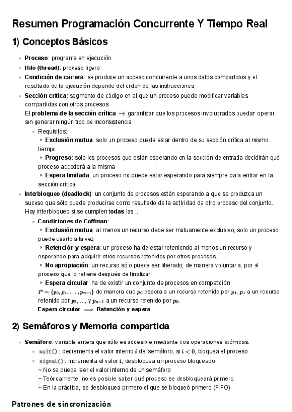 He publicado nuevos apuntes de 2º Programación Concurrente y Tiempo Real: Resumen General de Todo.pdf