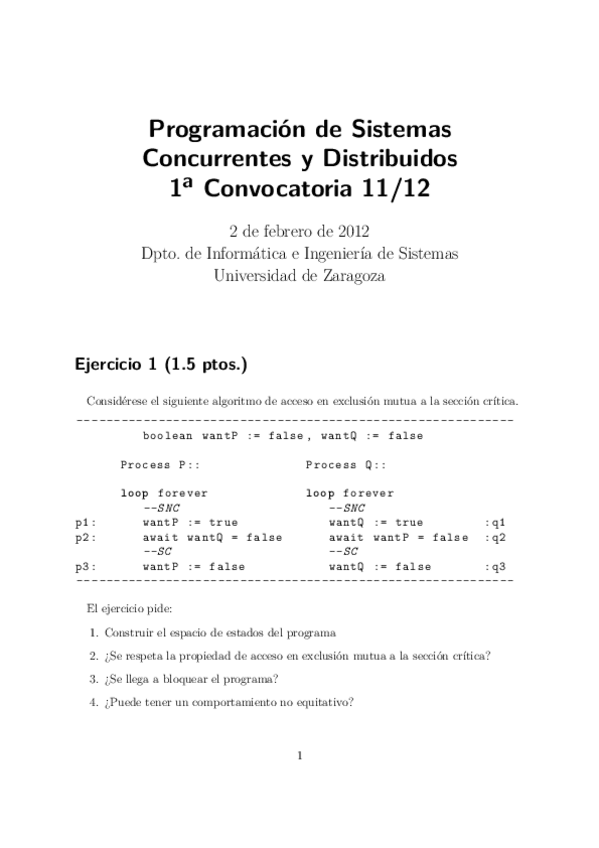 He publicado nuevos examenes de 2º Programación de sistemas concurrentes y distribuidos: examen-1.pdf