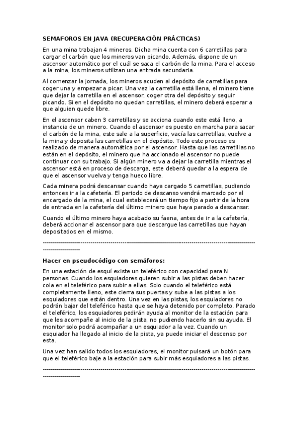 He publicado nuevos ejercicios de 2º Programación de sistemas concurrentes y distribuidos: Ejercicios clase