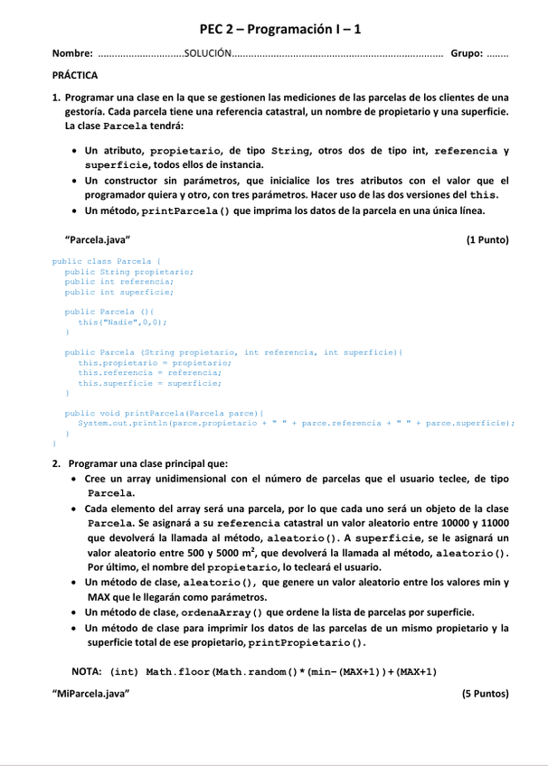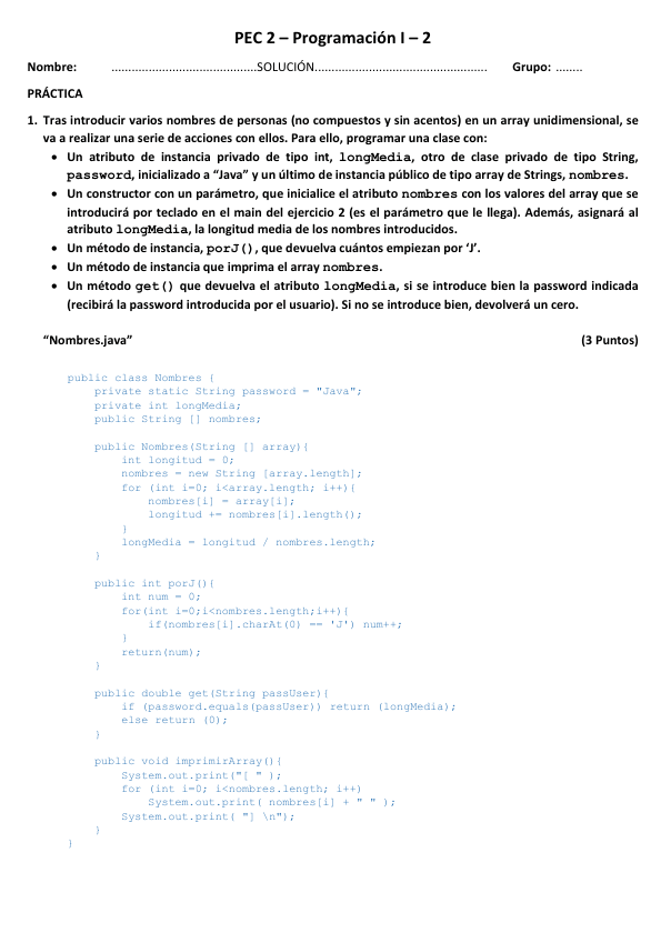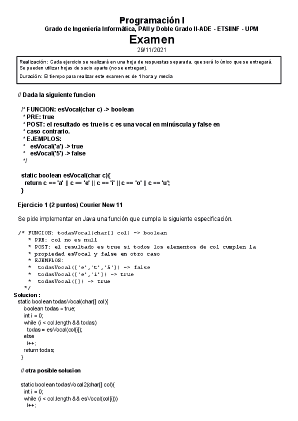 Examen de Programación I, solucionado, año 2024-2025