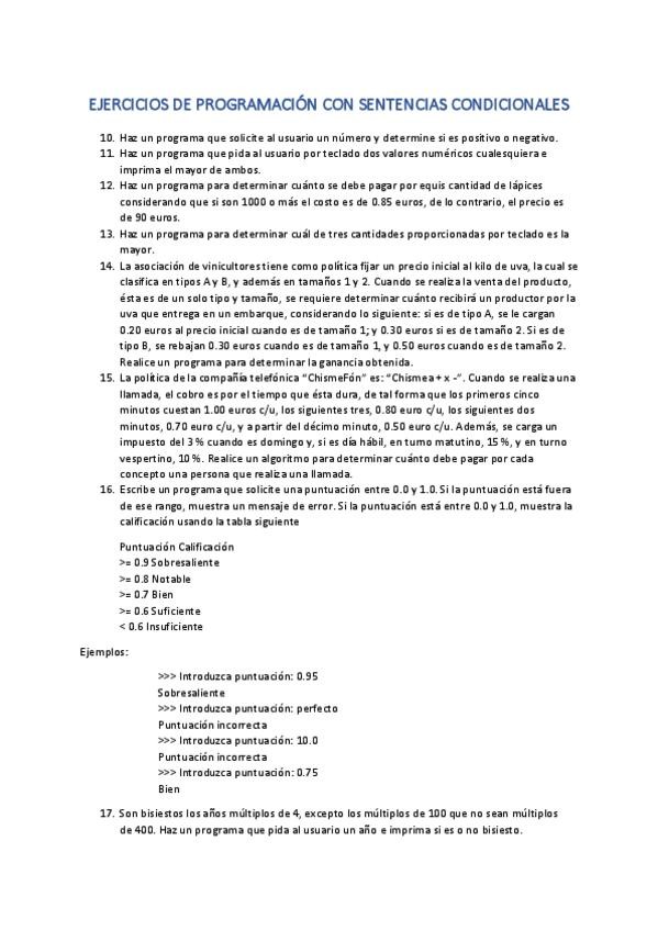 He publicado nuevos ejercicios de 1º Programación I: Ejercicios-condicionales.pdf