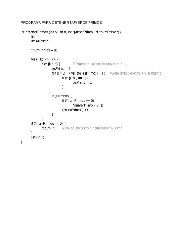 ejercicio del examen de 3 puntos que pedía obtener un programa con una función que buscase números primos