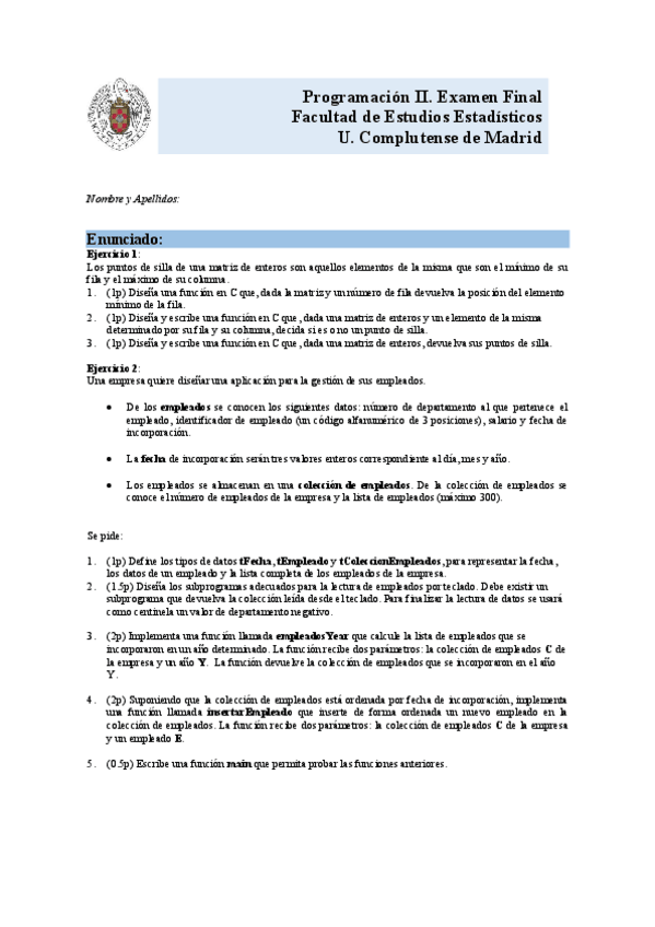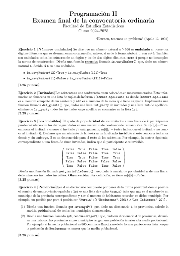 He publicado nuevos examenes de 1º Programación II: Examen-Final-24-25.pdf