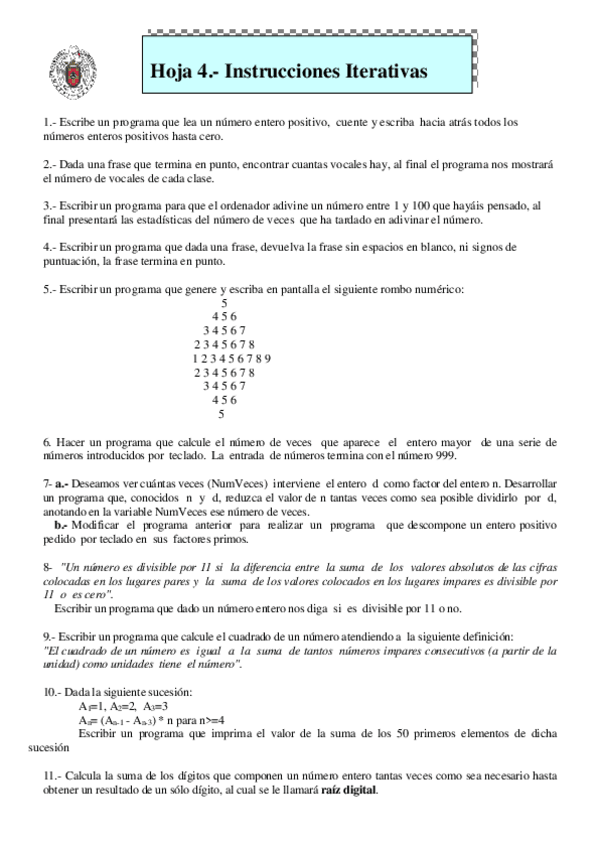 He publicado nuevos ejercicios de 1º Programación II: Ejercicio 11 del Tema 10.docx