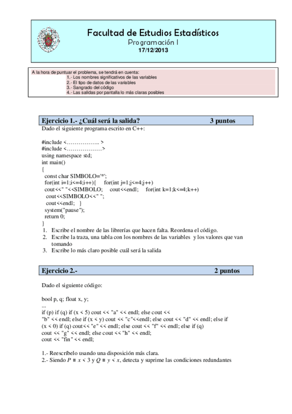 Programación Ejercicios y Exámenes
