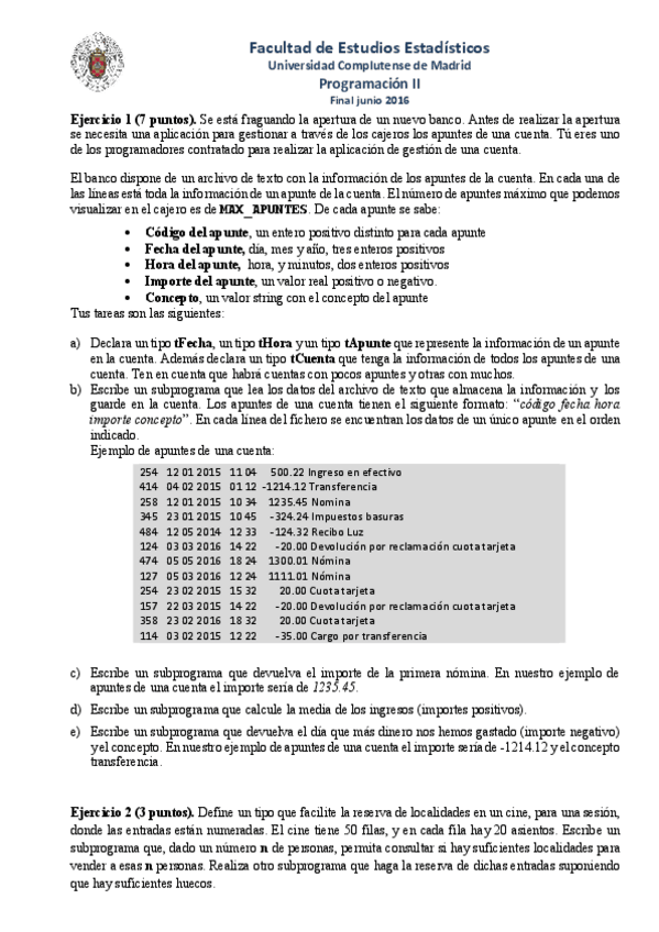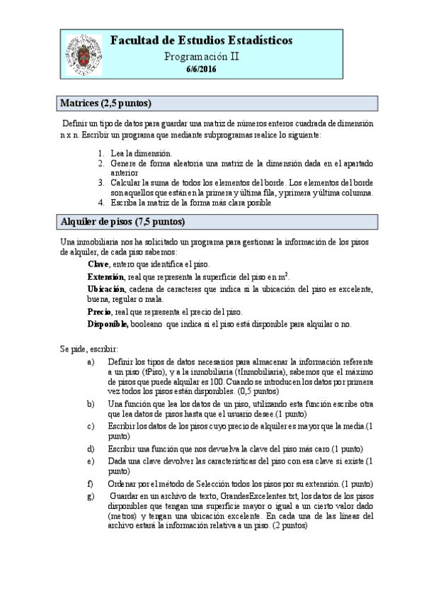 He publicado nuevos examenes de 1º Programación II: Examen parcial 2016.docx