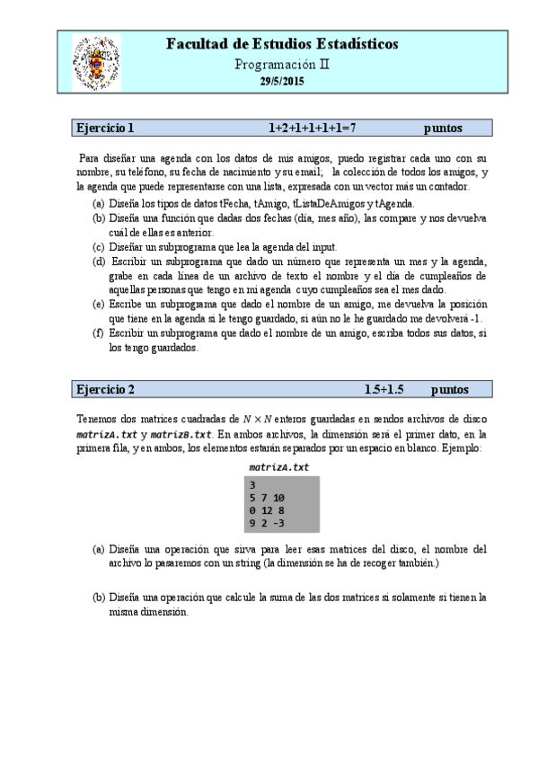 He publicado nuevos ejercicios de 1º Programación II: Ejercicios-matrices.pdf