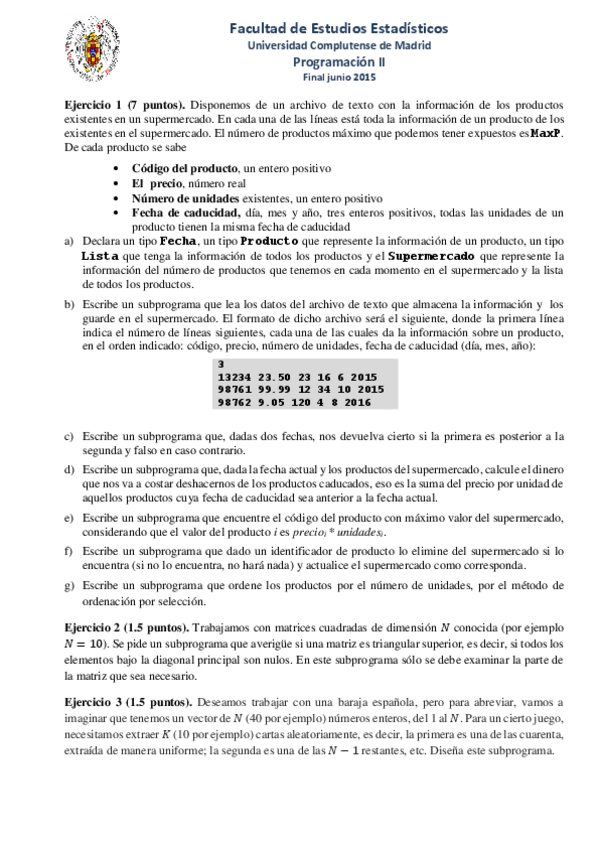 He publicado nuevos examenes de 1º Programación II: Examen_Junio_2015 P1.pdf