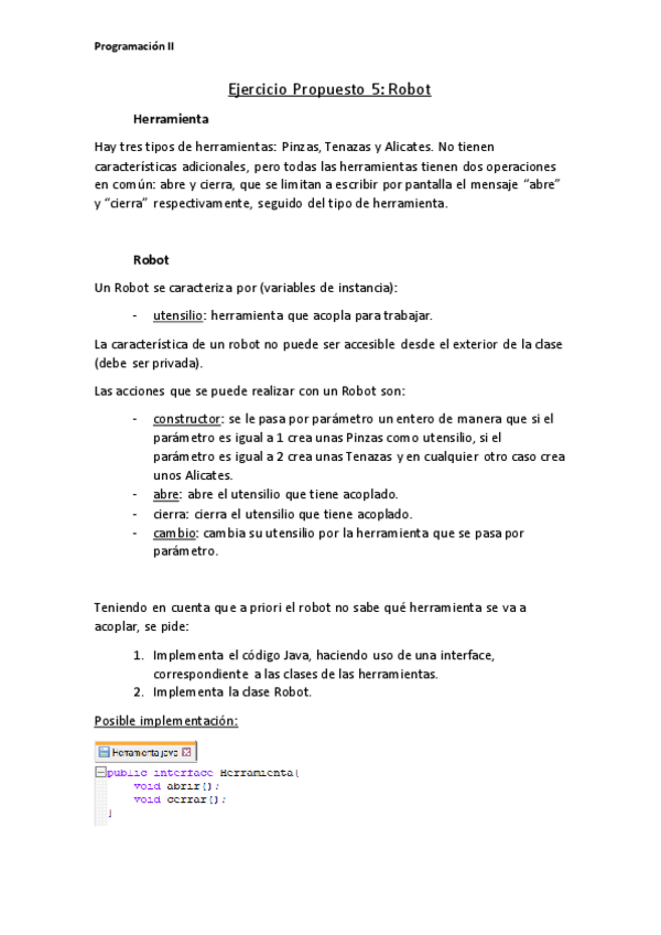 He publicado nuevos ejercicios de 1º Programación II: EjercicioPropuesto5_P2_Robot.pdf