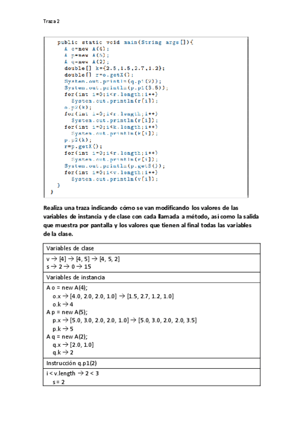 He publicado nuevos ejercicios de 1º Programación II: Traza2_P2.pdf