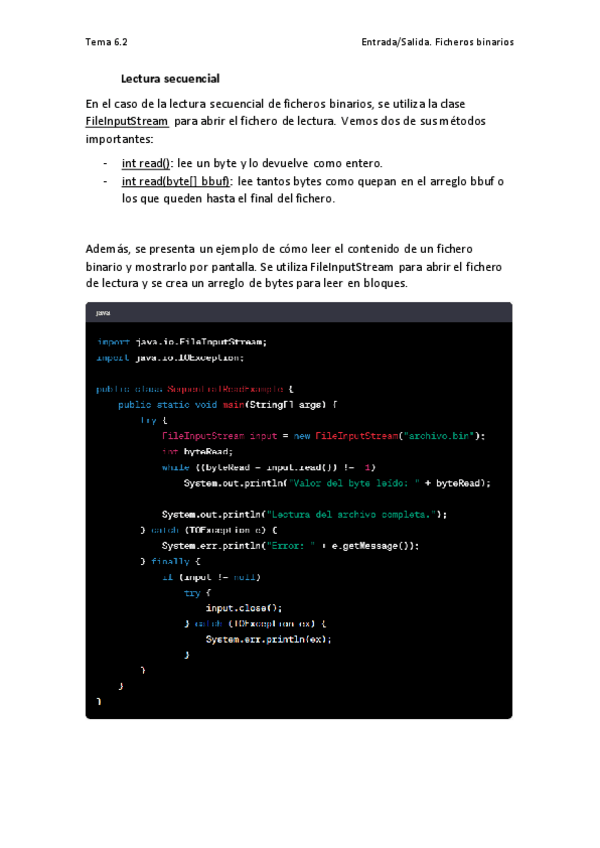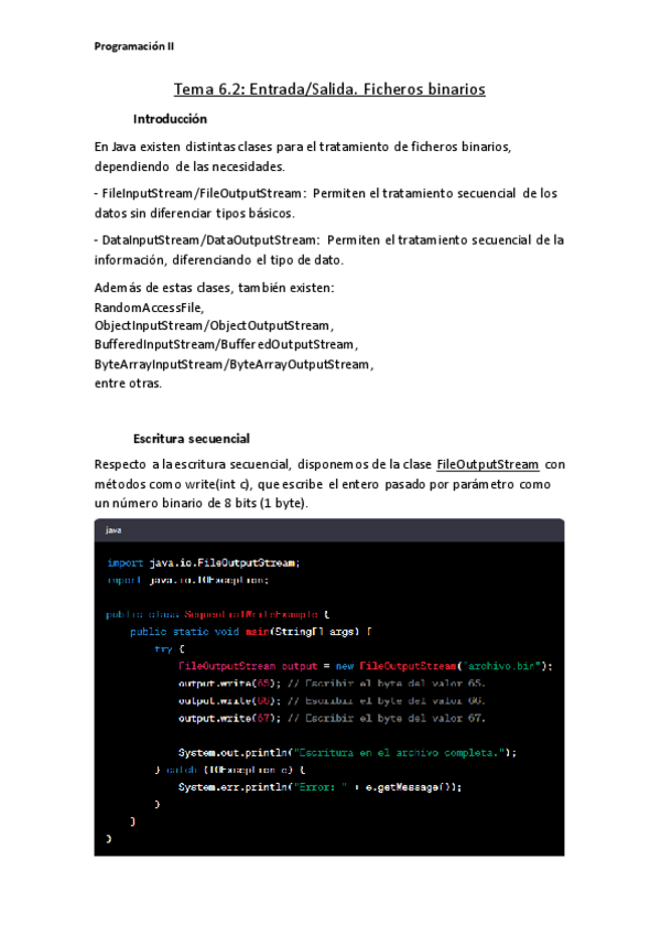 He publicado nuevos apuntes de 1º Programación II: Tema6.1_P2_EntradaSalidaFicheros.pdf