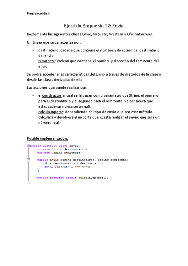 He publicado nuevos ejercicios de 1º Programación II: EjercicioPropuesto12_P2_Envio.pdf