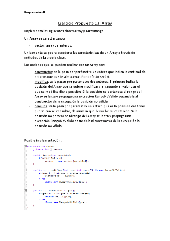 He publicado nuevos ejercicios de 1º Programación II: EjercicioPropuesto13_P2_Array.pdf