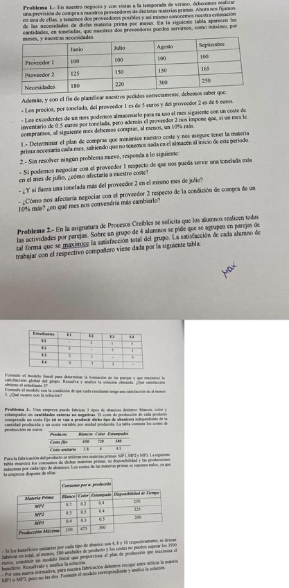 Todos los ejercicios y cuestiones teóricas de programación matemática junto a problemas de examen