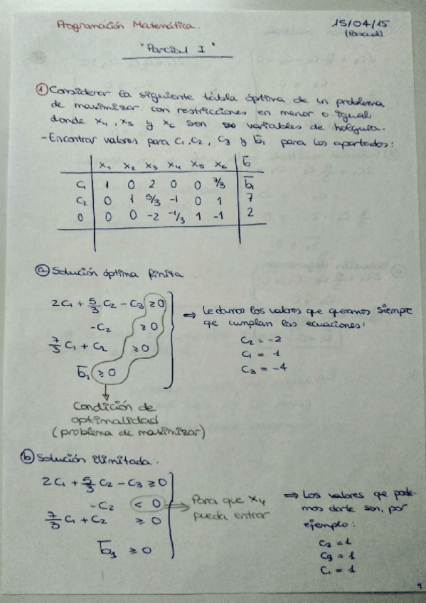 He publicado nuevos examenes de 1º Programación Matemática: Parcial 1 hecho en clase.pdf