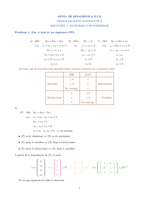 He publicado nuevos apuntes de 1º Programación Matemática: relación 3 dualidad y sensibilidad resuelta