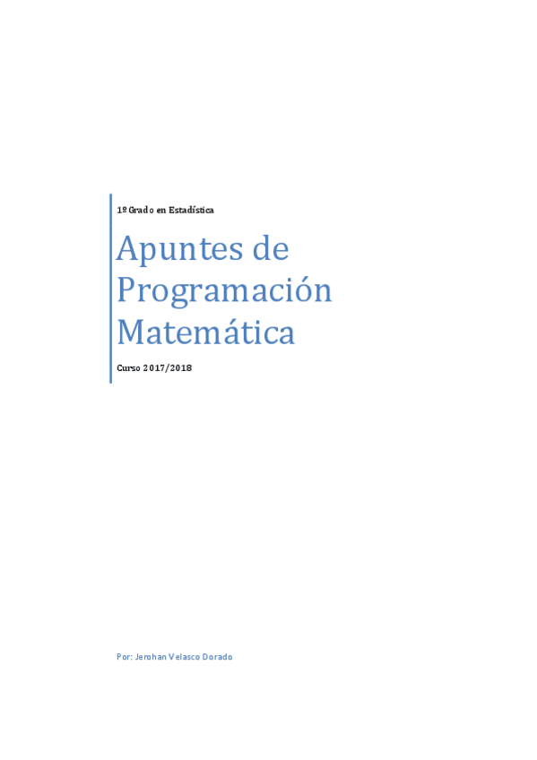 He publicado nuevos apuntes de 1º Programación Matemática: BLOQUE 1:INTRODUCCIÓN