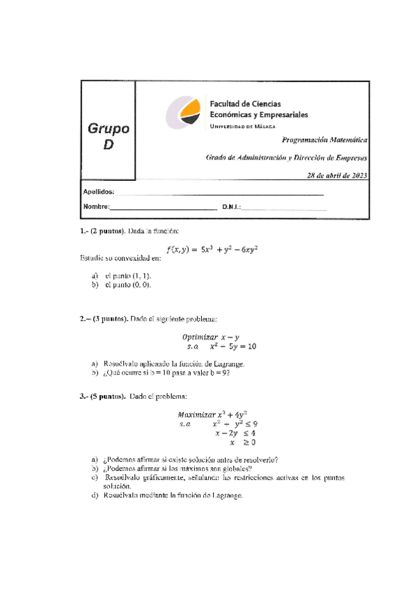 He publicado nuevos examenes de 1º Programación Matemática: Examen-Parcial-Temas-1-y-2-Abril-2023-Pr.pdf