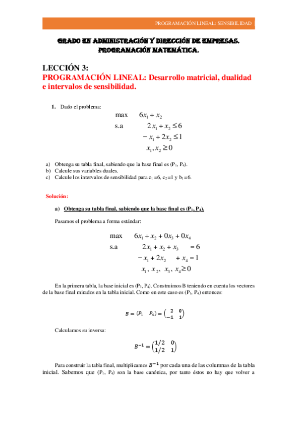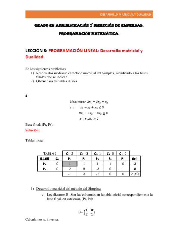Tema 3 apuntes clase casos particulares de progrmación lineal y método de la M grande