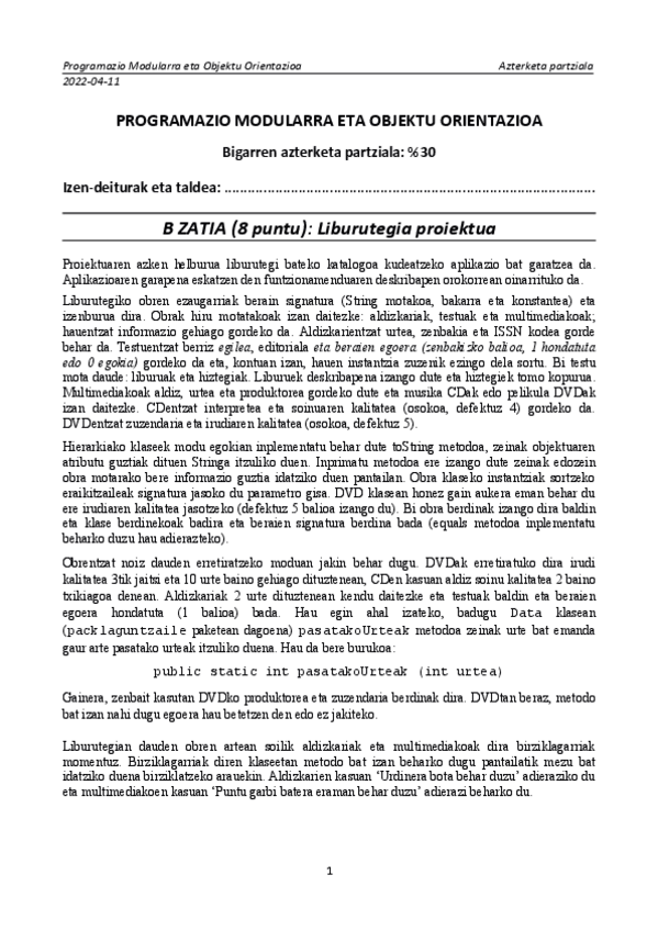 He publicado nuevos examenes de 1º Programación Modular y Orientación a Objetos: 2021-2022-1go-Partziala.pdf