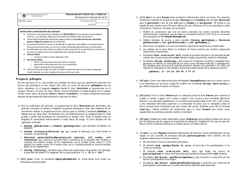 He publicado nuevos examenes de 1º Programación Orientada a Objetos: Examen-Junio-2017-prRegata-RESUELTO.pdf