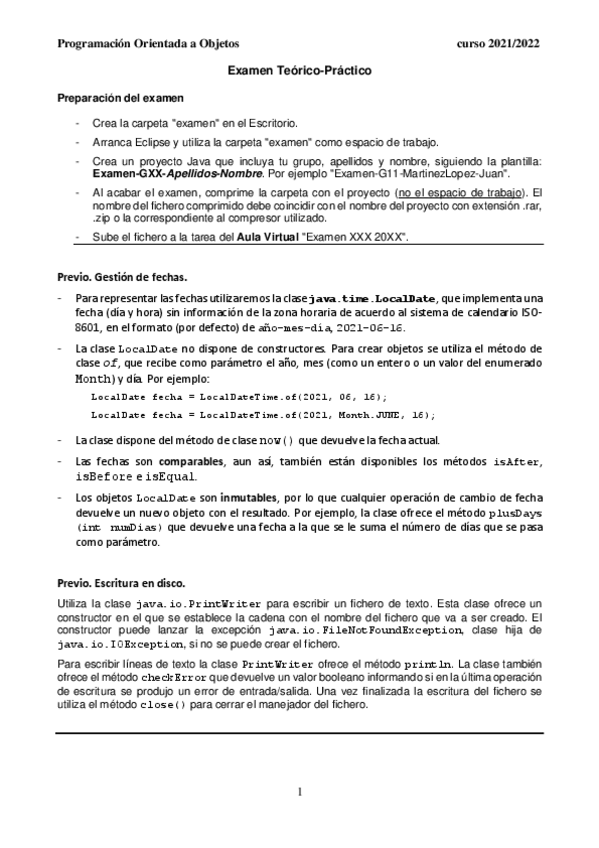 He publicado nuevos examenes de 2º Programación Orientada a Objetos: examen-Feb2022.pdf