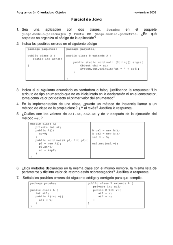 He publicado nuevos examenes de 2º Programación Orientada a Objetos: parcialJava-Nov08.pdf