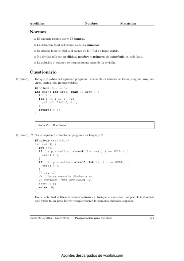 He publicado nuevos examenes de 2º Programación Para Sistemas: Examen Teoria