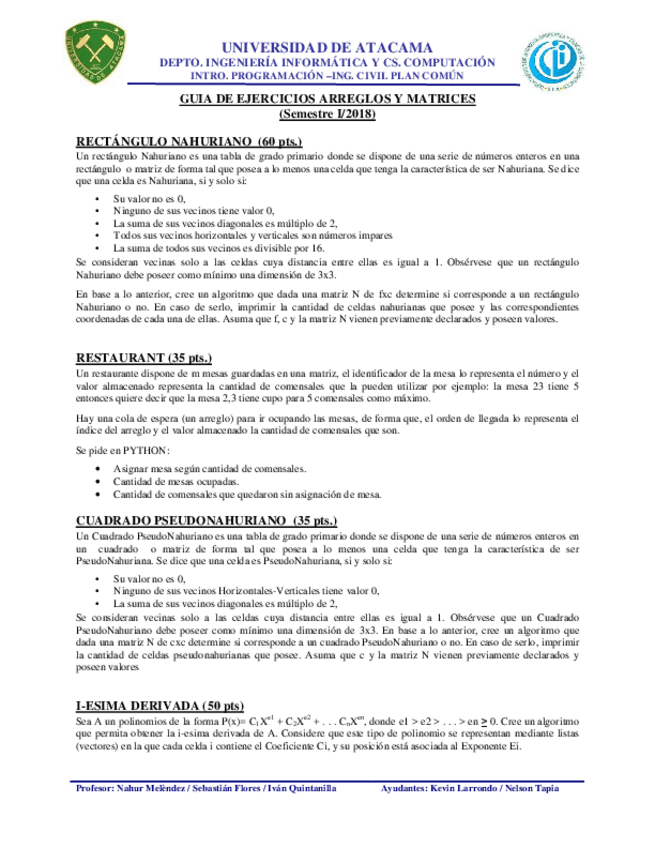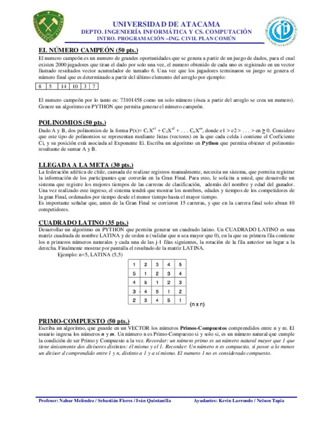 He publicado nuevos examenes de 8º Programación y Algoritmos: GUIA DE EJERCICIOS ARREGLOS Y MATRICES EN PYTHON - EJERCICIOS TIPO PRUEBA.pdf