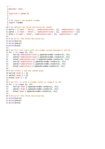 EJERCICIOS RESUELTOS de todas las semanas de PROGRAMACIÓN de Ingeniería Informática en inglés. Los ejercicios cuentan con explicaciones paso por paso y apuntes útiles para comprenderlos fácilmente.