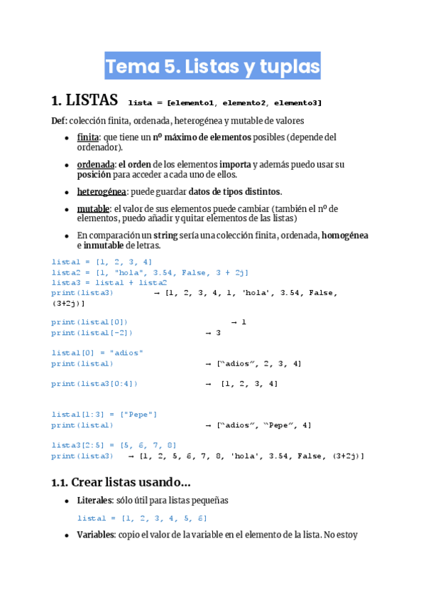 Apuntes python actualizados. Incluyen: listas, tuplas y diccionarios.