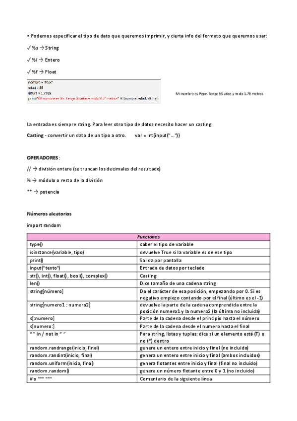 Apuntes python actualizados. Incluyen: variables, operadores, input, números aleatorios y comentarios.
