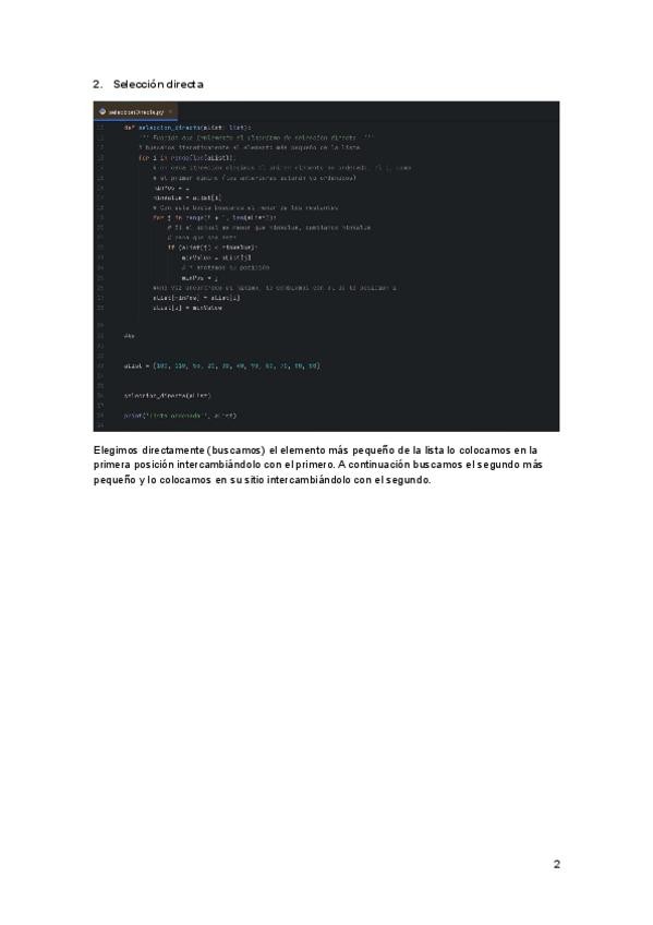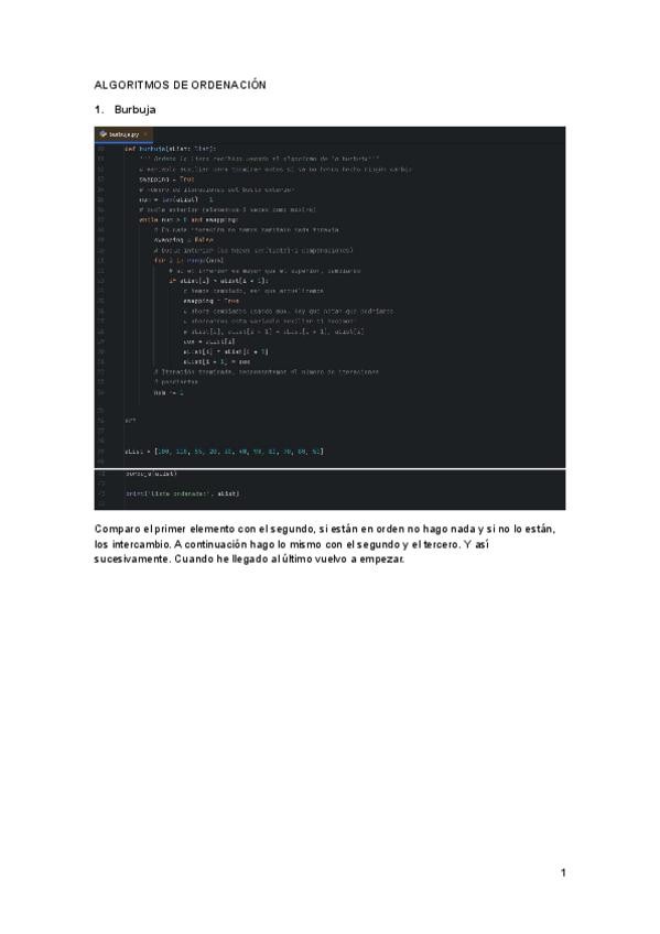 Resumen completo del temario para llevar al examen, con métodos de ordenación de listas y ejemplos