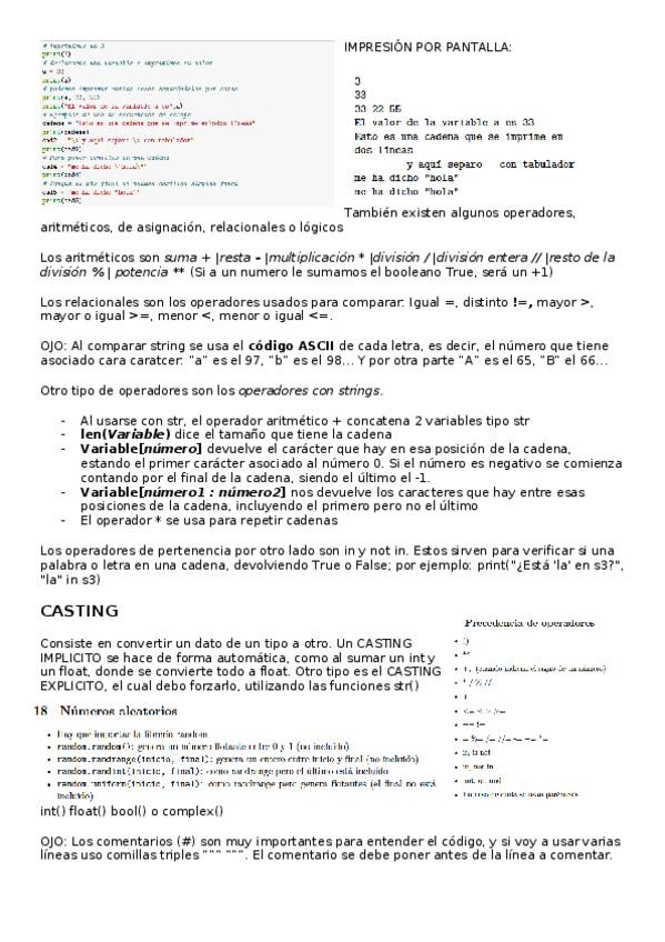 Apuntes python actualizados. Incluyen: variables, operadores, input, números aleatorios y comentarios.