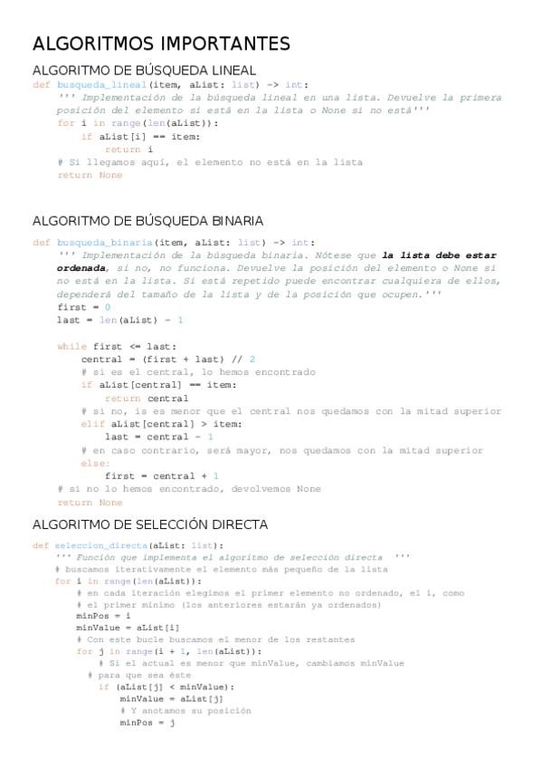 Resumen completo del temario para llevar al examen, con métodos de ordenación de listas y ejemplos