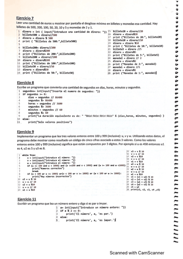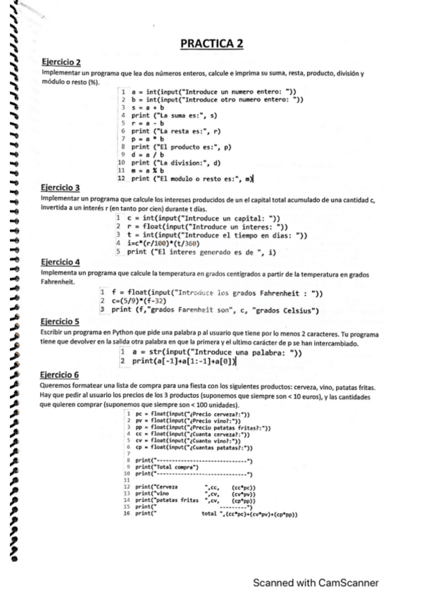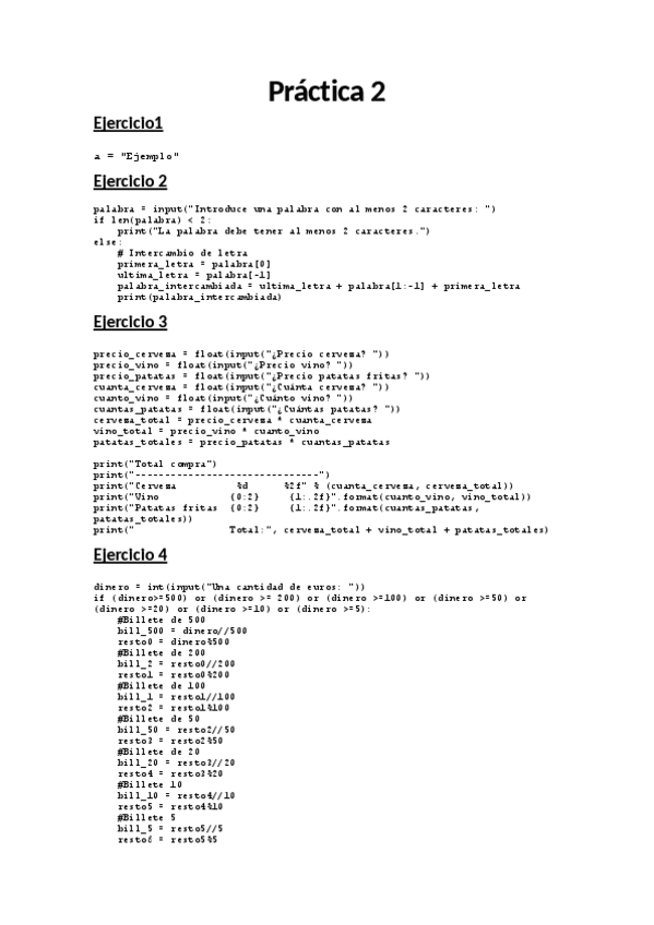 Ejercicios de las practicas de programación resueltos