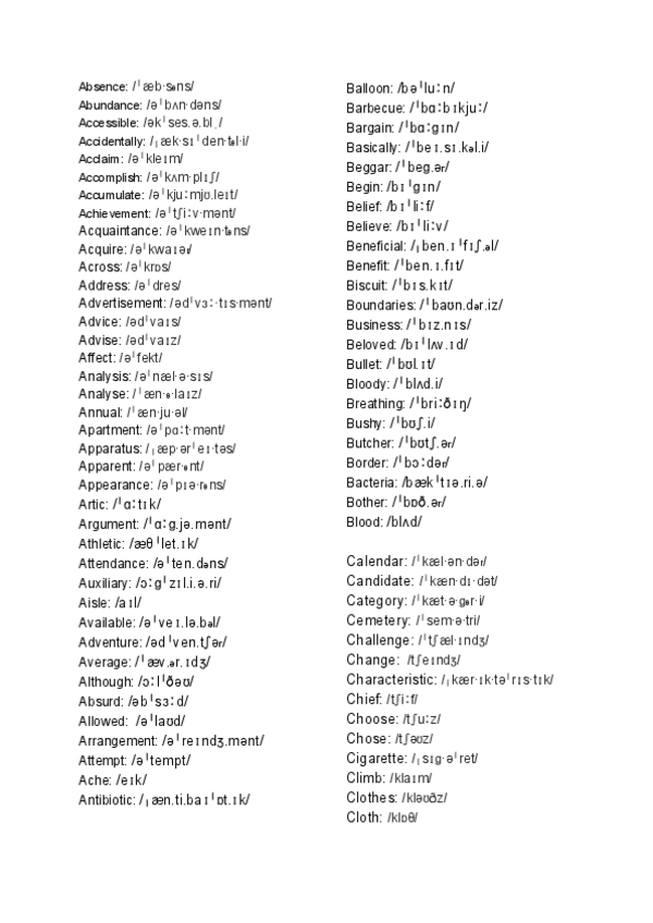 PRONUNCIATION LIST