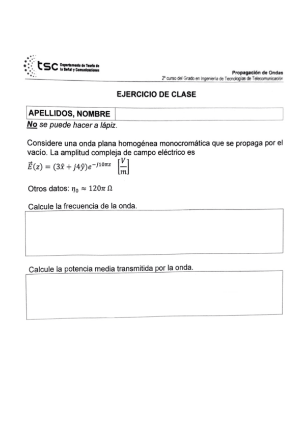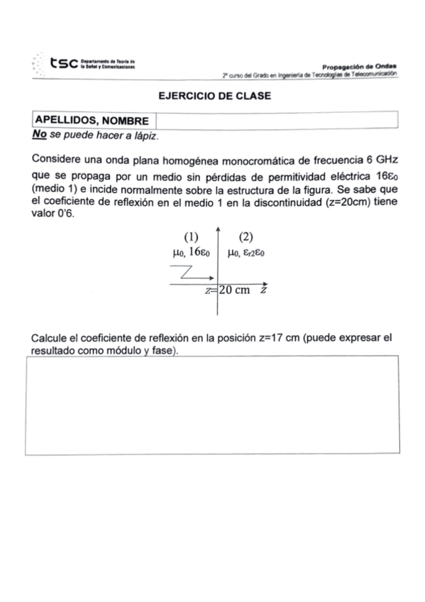 He publicado nuevos examenes de 2º Propagación de Ondas: Ejercicios Resueltos paso a paso 1ºParcial.pdf